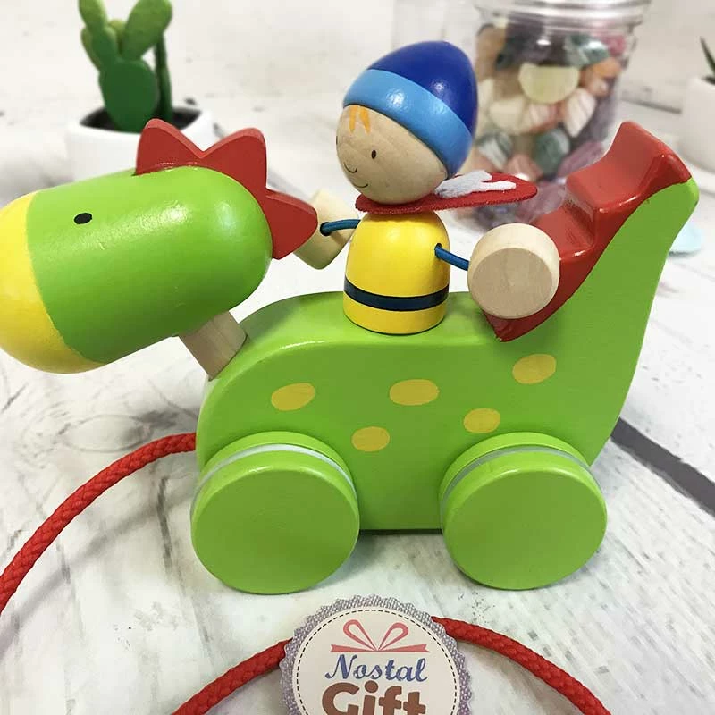 Animal en bois à tirer – Dragon et chevalier à tirer