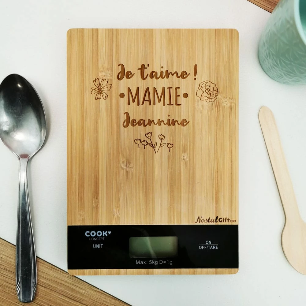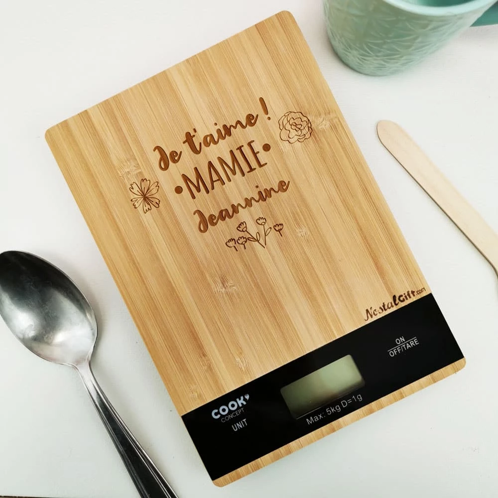 Balance en bois prénom personnalisable – “Je t’aime mamie”