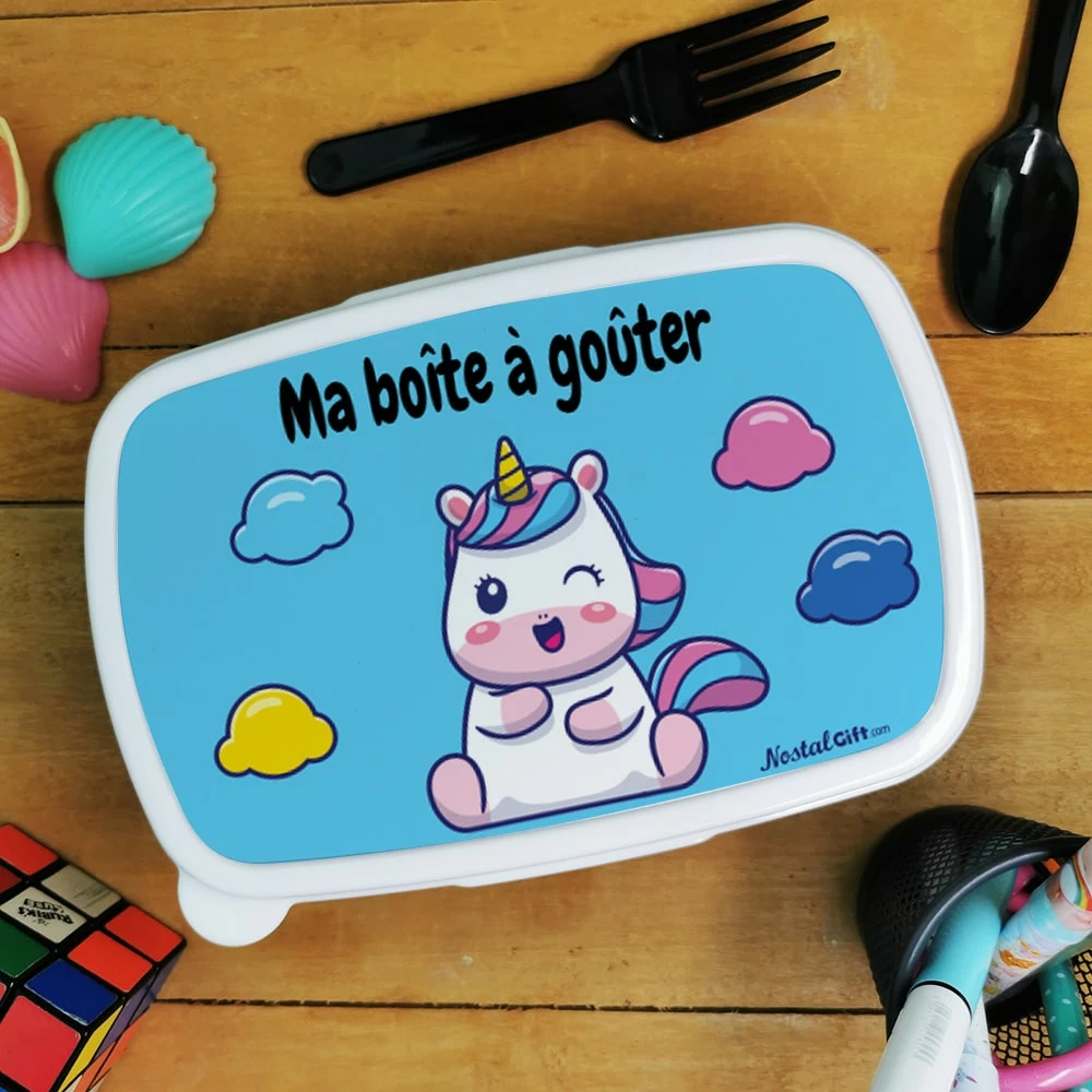 Faites plaisir avec cette boîte à goûter pour enfant de la collection ” Licorne” accompagnée de sa gourde.