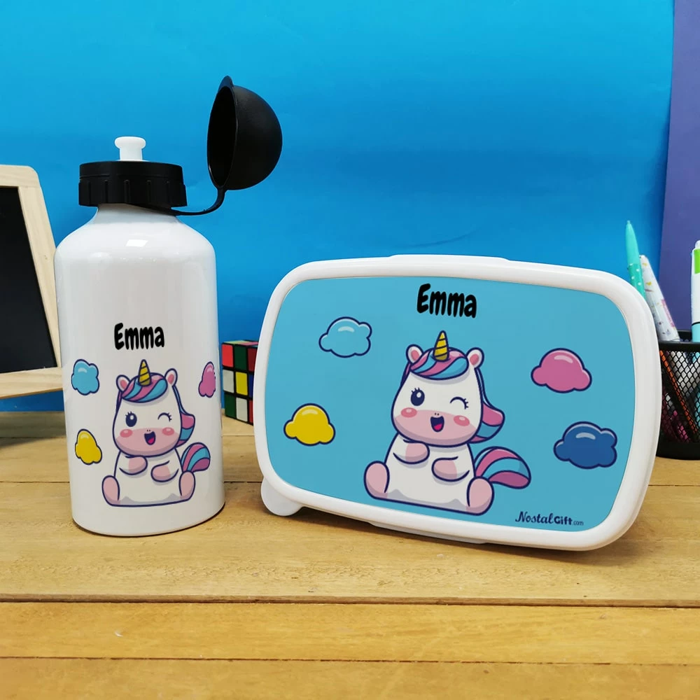 Boite goûter & gourde enfant personnalisées Licorne – Cadeau pour fille, pour la rentrée scolaire ou fêter un anniversaire