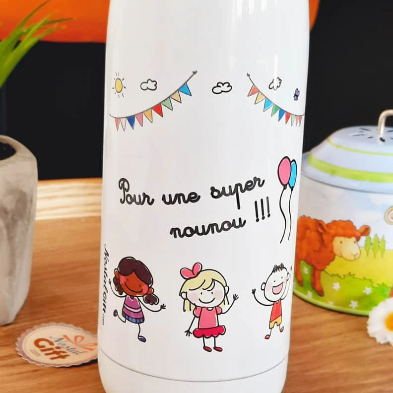 Bouteille de transport isotherme – Pour une super nounou – Cadeau nounou