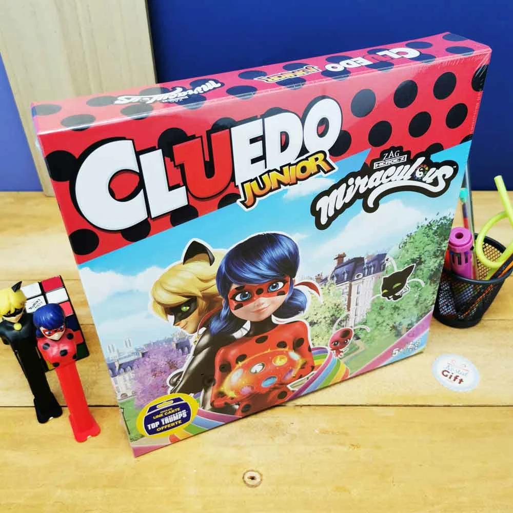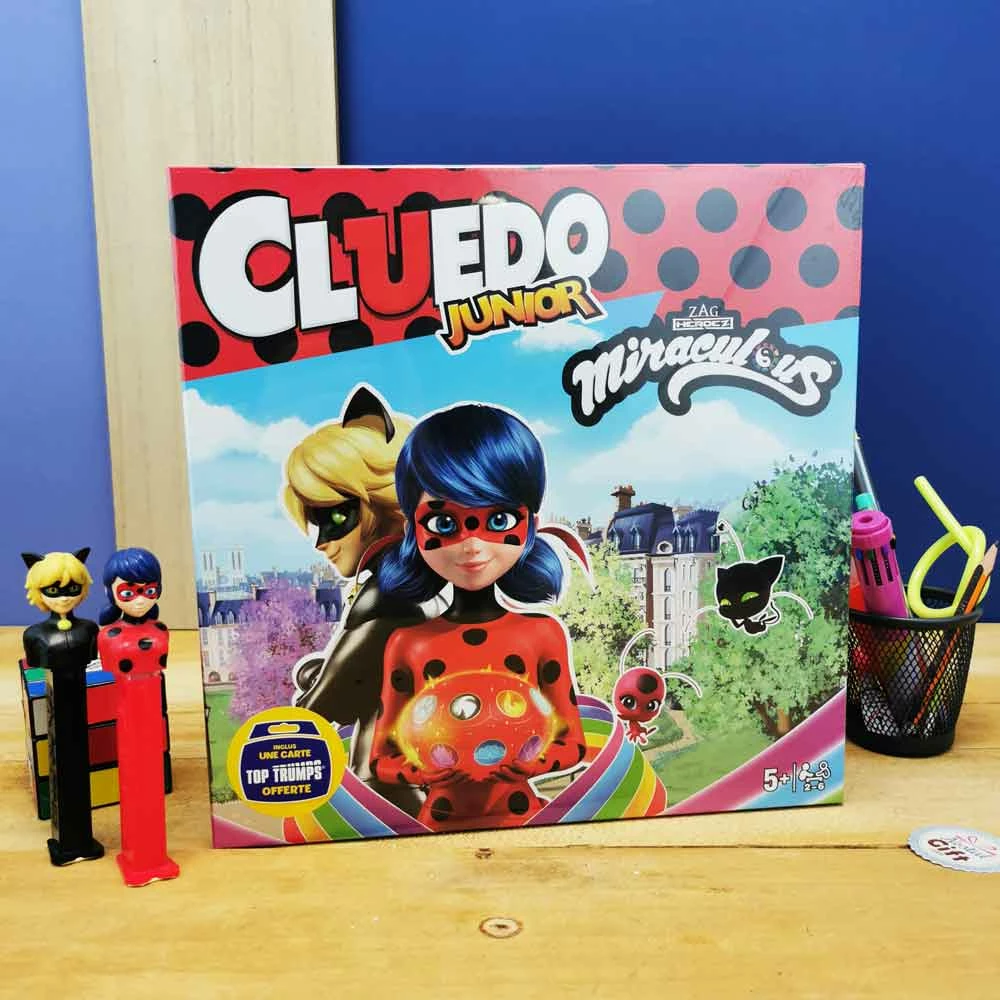 – Contenu : 1 plateau de jeu, 6 jetons personnage, 6 jetons Objet, 7 socles blancs, 7 socles jaunes, 1 carnet de détective, 1 dé, 1 feuille d’autocollants et les règles du jeu