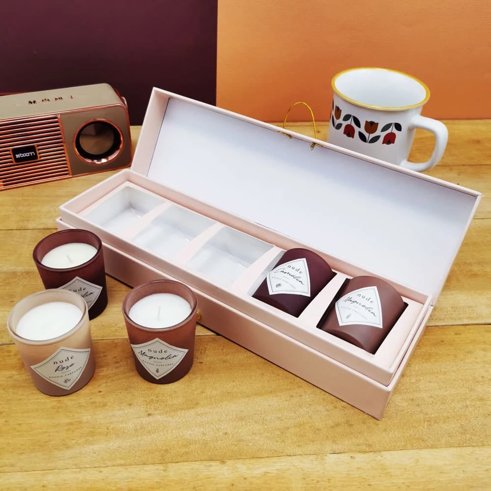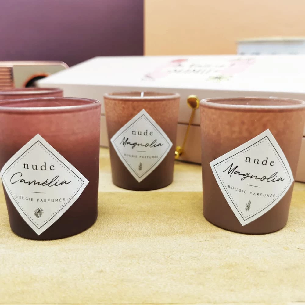– Senteurs : Une bougie senteur rose – 2 bougies senteur camélia et 2 bougies senteur magnolia