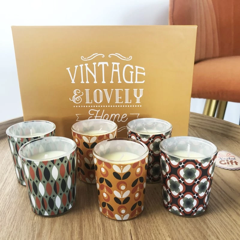 Coffret 6 bougies – Vintage & Lovely Home – Senteur Ambre, Linge Frais et Bois de Santal