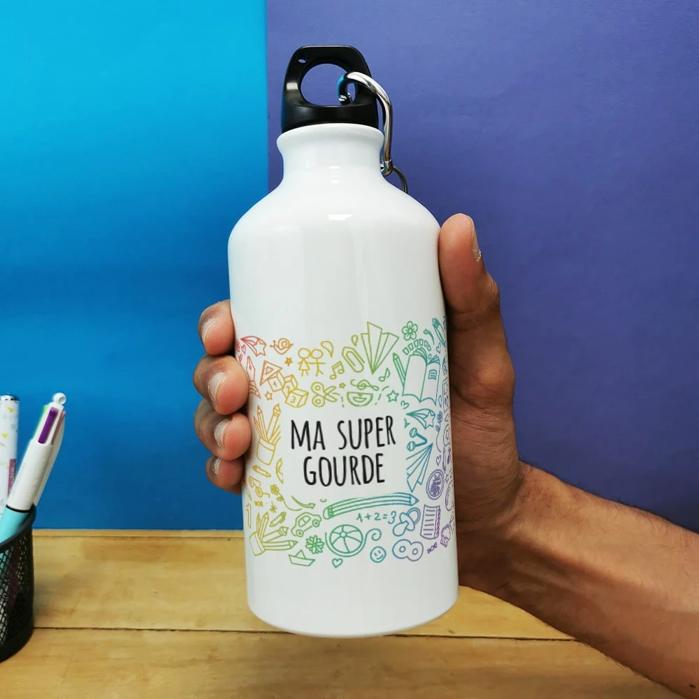Inscription à l’avant : “Ma super gourde