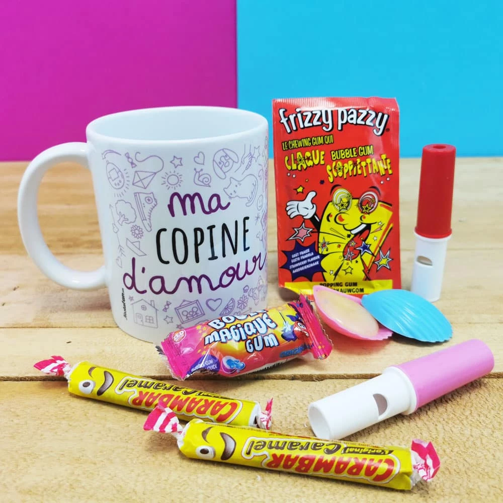 MUG “ma Copine d’amour ” rempli de bonbons rétro 80 – Cadeau Copine