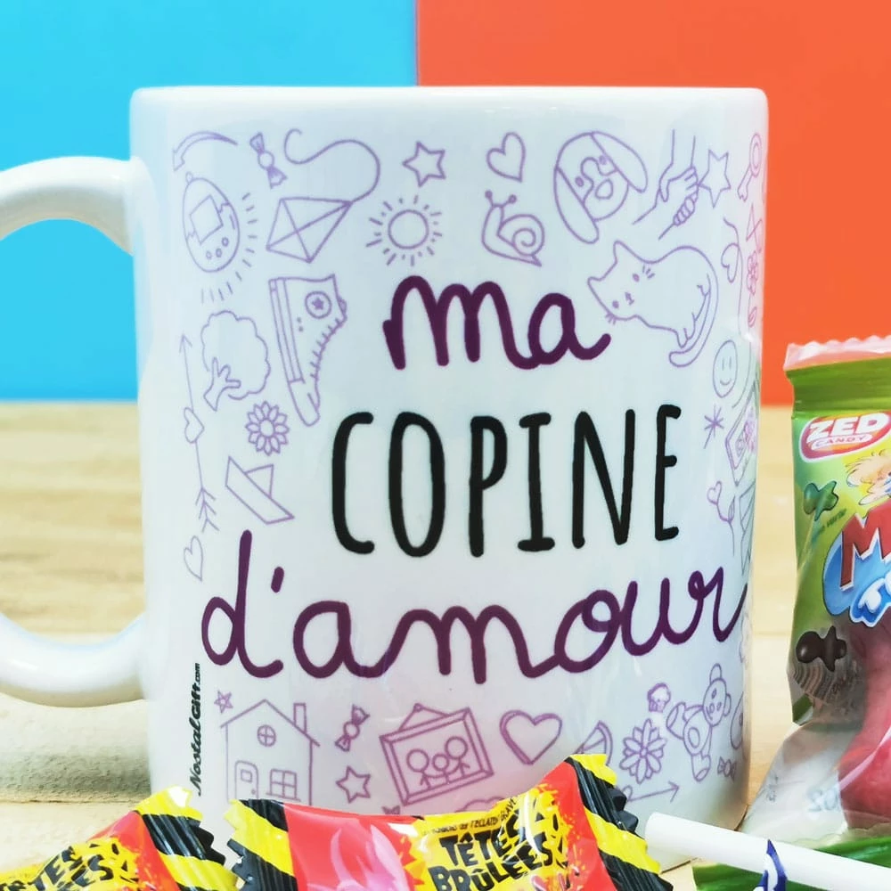 MUG “ma Copine d’amour ” rempli de bonbons rétro 90 – Cadeau Copine