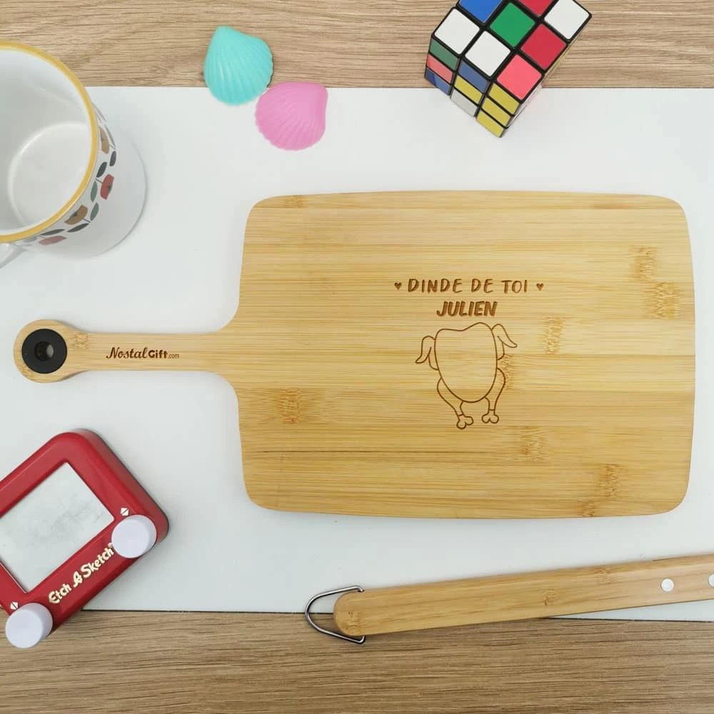 Planche à découper en bois prénom personnalisable – “Dinde de toi”