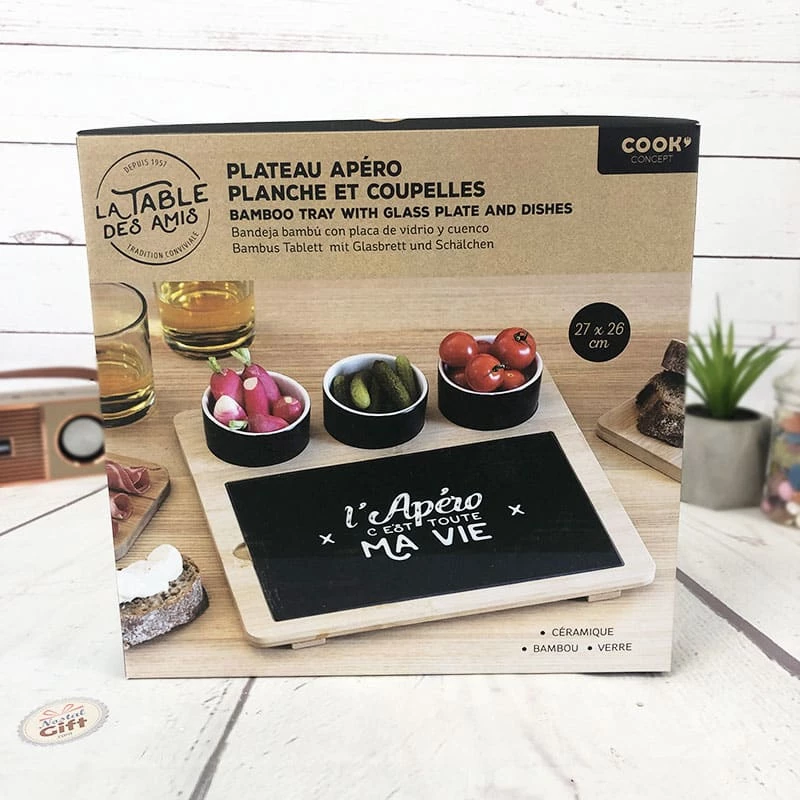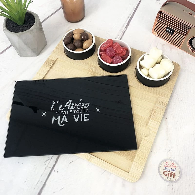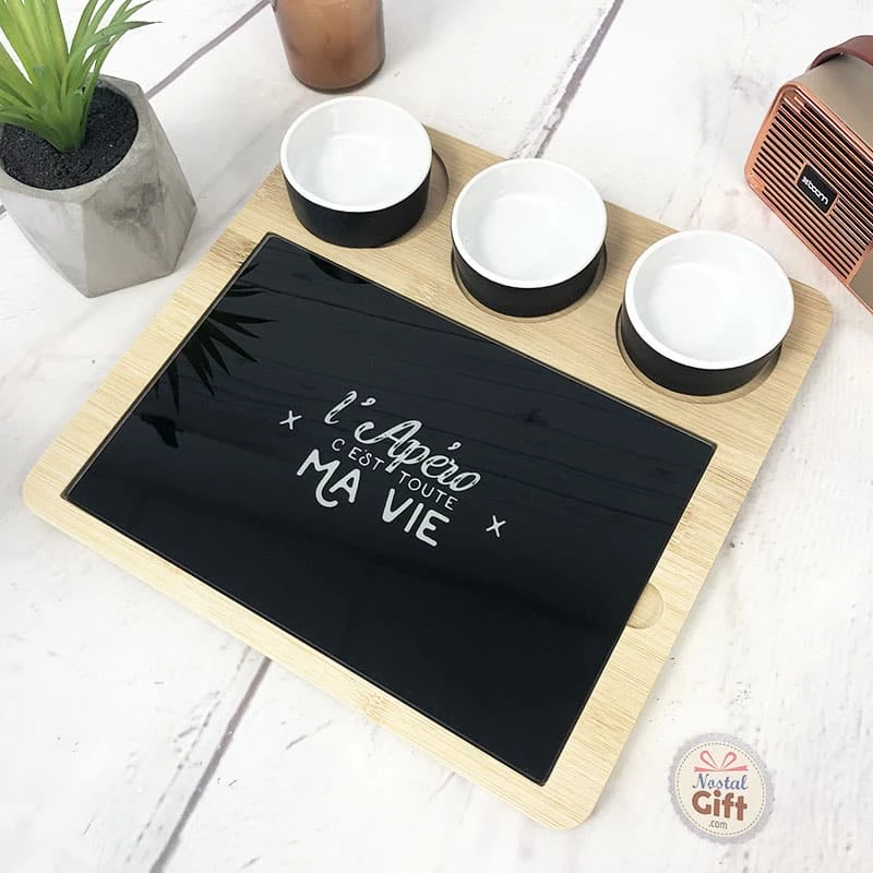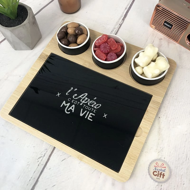 – Plateau apéro avec une planche et 3 coupelles incluses