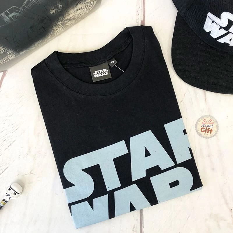 Star Wars – T-shirt pour adulte noir et bleu avec logo