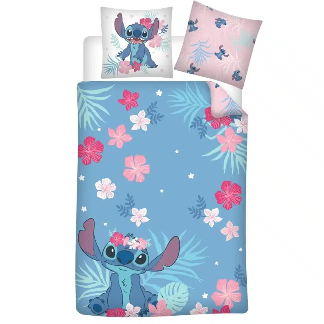 Stitch fleurs – Parure / Housse de lit en coton 1 à 2 personnes (140 x 200 cm) – Disney