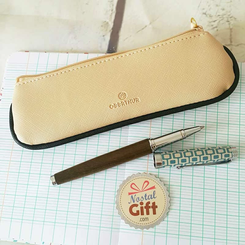 Stylo bille bleu en bois avec étui – Modèle Austin (Oberthur)