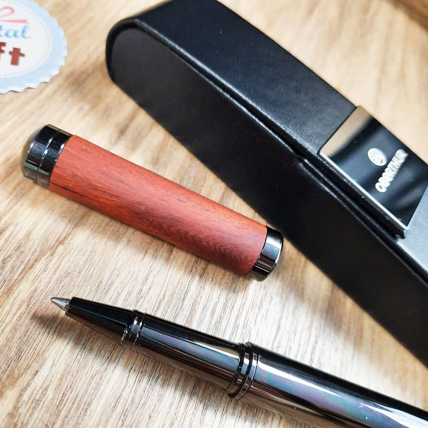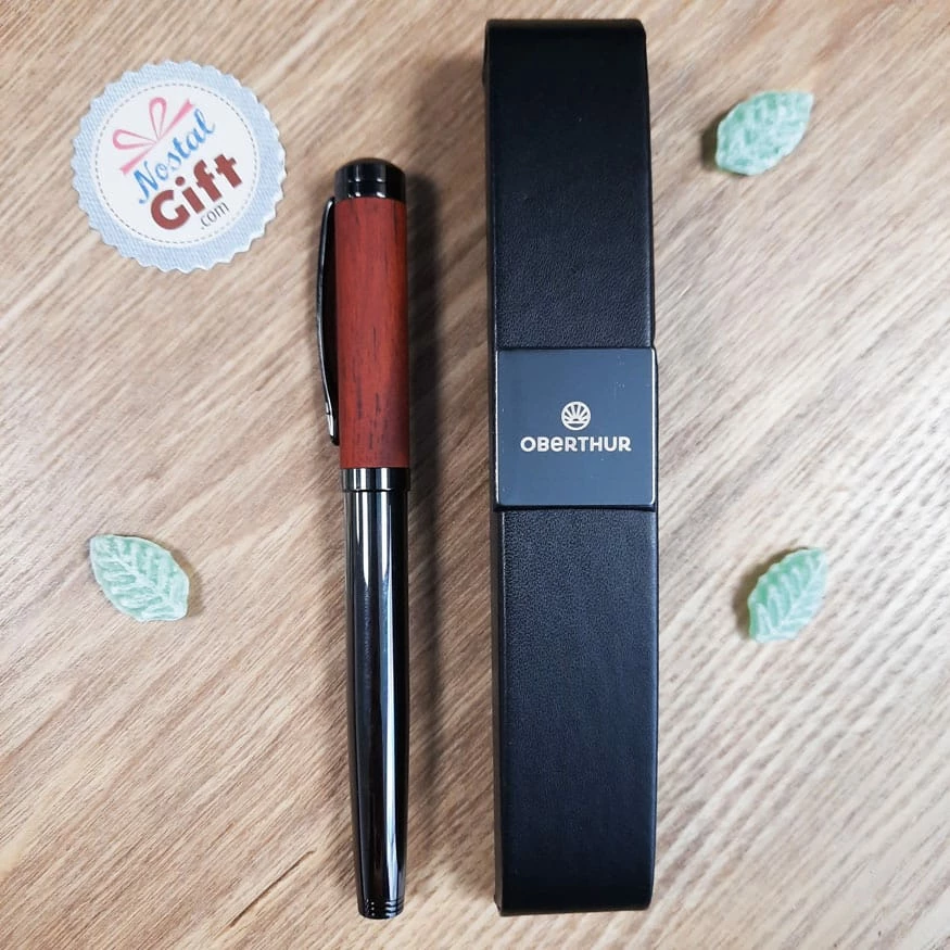 Stylo Roller Tandem en bois de rose/gun et son étui – Oberthur