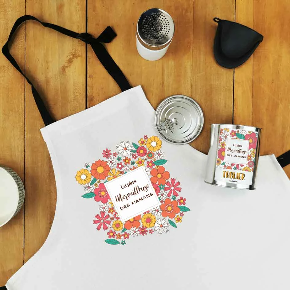 Tablier de cuisine dans sa boîte de conserve – “La plus merveilleuse des mamans”