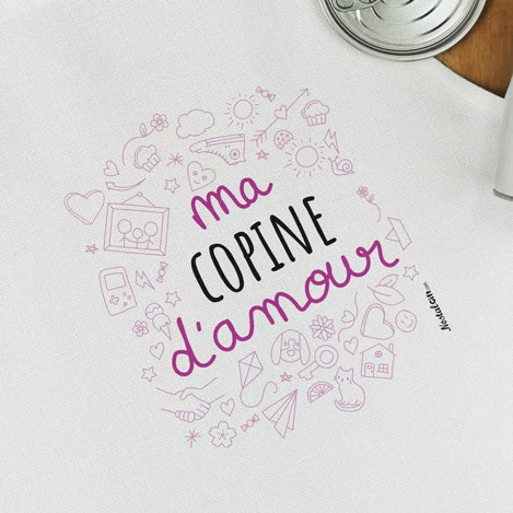 Tablier de cuisine dans sa boîte de conserve – “Ma copine d’amour” – Cadeau Copine