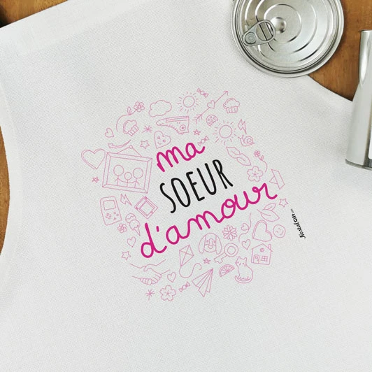 Tablier de cuisine dans sa boîte de conserve – “Ma Sœur d’amour” – Cadeau Sœur