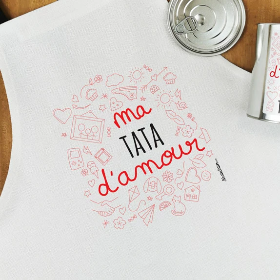 Tablier de cuisine dans sa boîte de conserve – “Ma tata d’amour” – Cadeau Tata