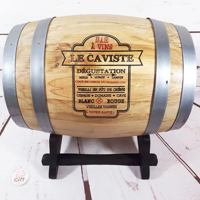 – Tonneau en bois style bistrot avec cerclage design en métal. Avec Robinet pour service rapide et précis.