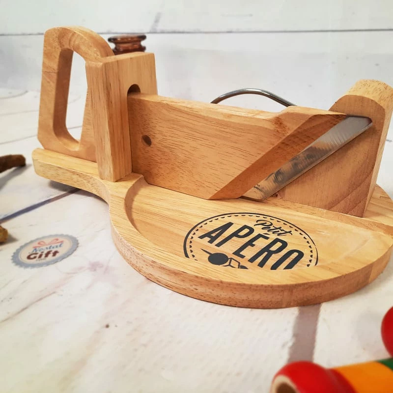 – Fonctionnement : Trancheuse à charcuterie en bois avec son plateau