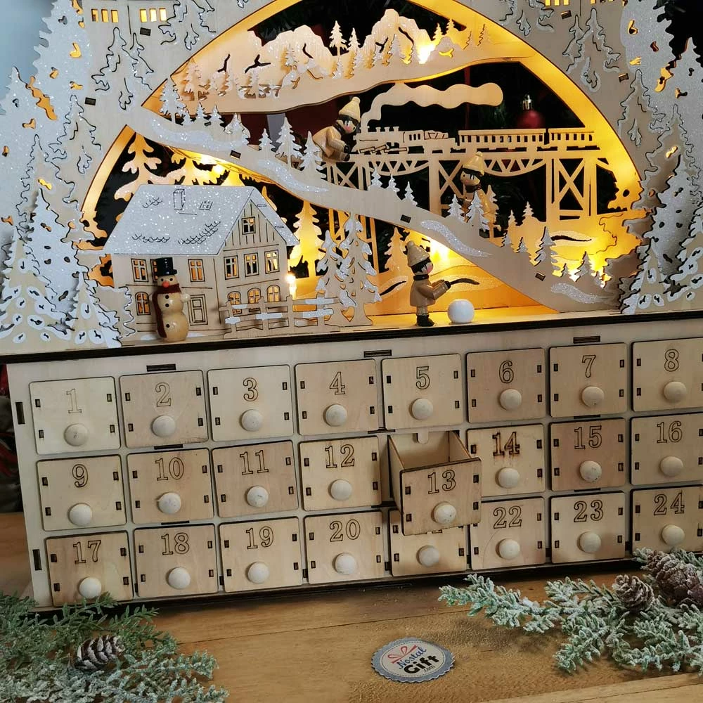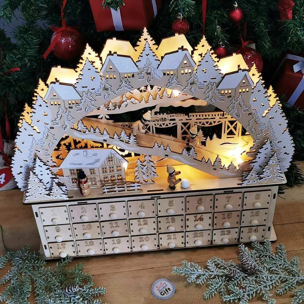 Village lumineux de Noel – Calendrier de l’Avent en bois – “Plaisir du Ski”